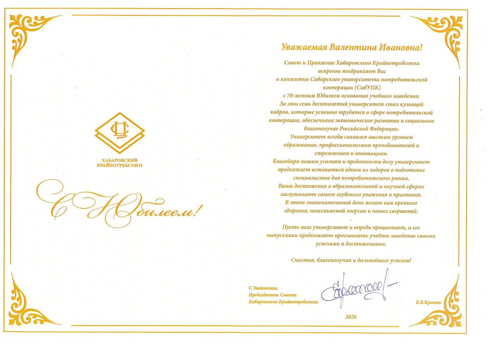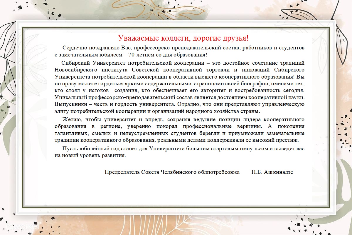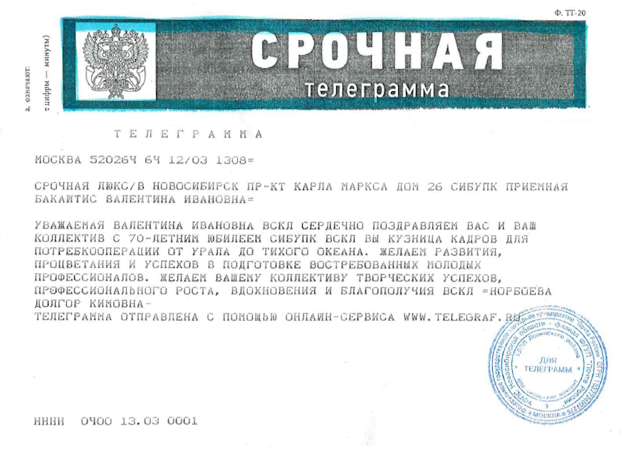 Поздравления с 70-летием СибУПК