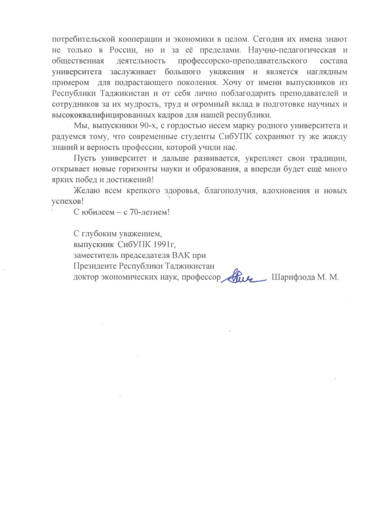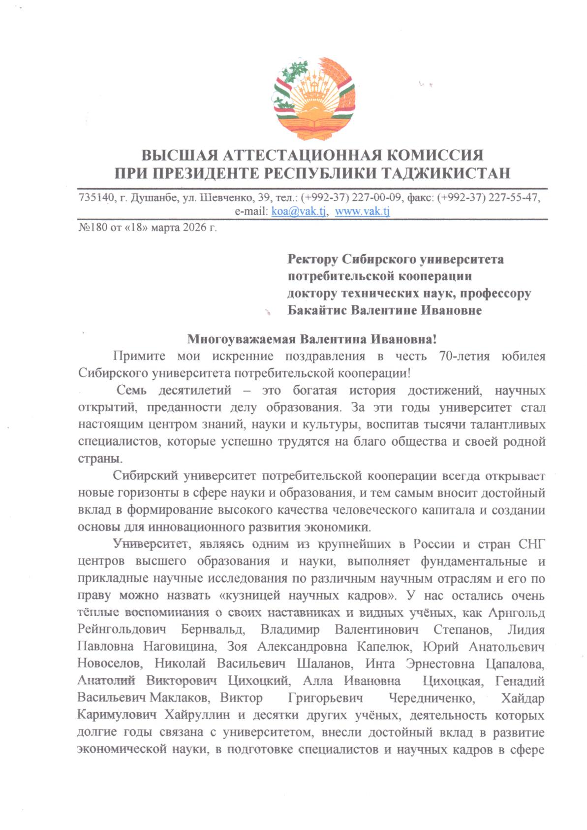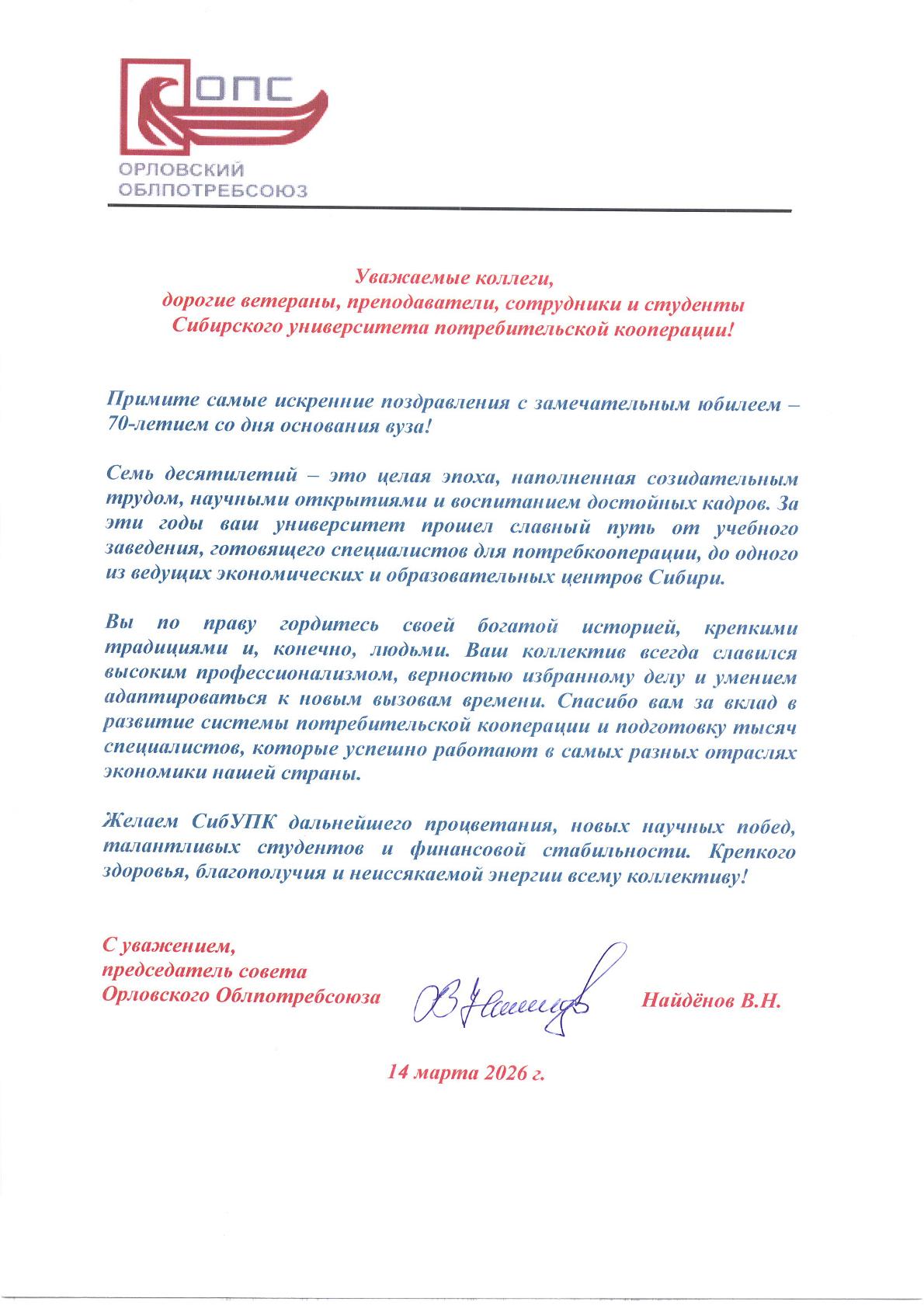Поздравления с 70-летием СибУПК