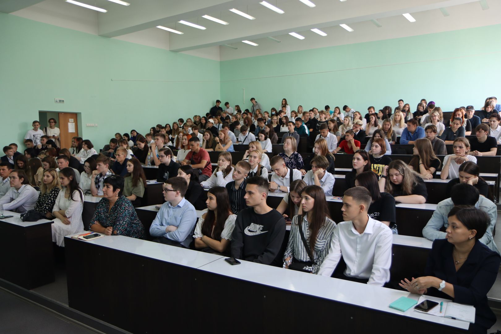 У входа в университет звучал гимн России, обучающихся встречали активисты студсовета с ярким танцевальным флешмобом. Затем состоялись встречи студентов 1 курса с руководством вуза и гостями университета.