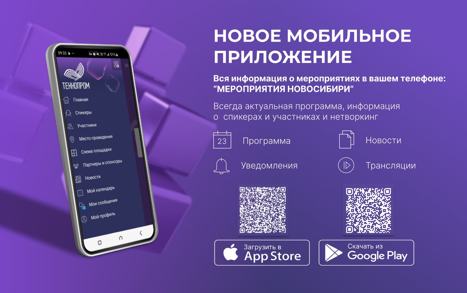 В обновлённом приложении «Мероприятия Новосибири» вы найдете: актуальное расписание всех мероприятий, программ по секциям и площадкам; профили спикеров и участников; онлайн-трансляции ключевых сессий и круглых столов; новости в реальном времени и push-уведомления о важных изменениях. Скачать приложение можно по ссылкам: